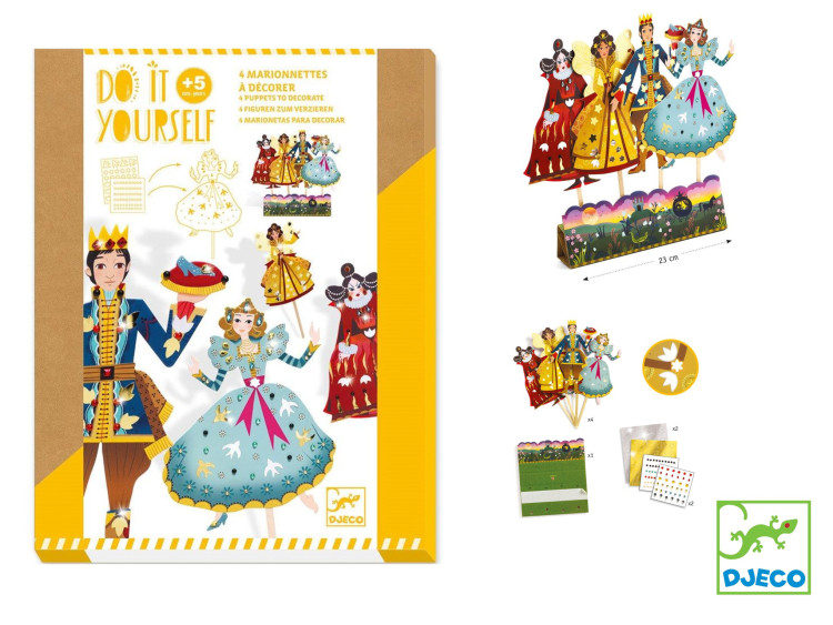 The ‘do it yourself’ series of the Djeco company offers children a game that consists of two phases. Creative employment and expression! The ‘Cinderella’ puppet set allows you to build the figures step by step and decorate them with metal stickers and gems! After you finish your construction you can tell the tale or create a fantasy story!