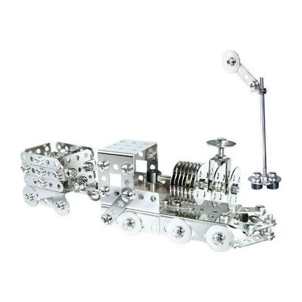 All aboard! Become an engineer and a conductor with Eitech’s Train with Rail Car Construction Set. Attach the rail car loaded with cargo and transport it down the tracks with the main train. Over 180 parts make up this steel locomotive after completion. Advanced builders can develop three dimensional thinking that promotes creativity and learning while at the same time having fun! Step by step illustrated instructions are included for easy to follow directions.