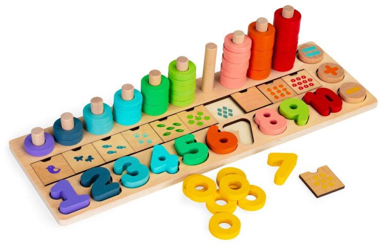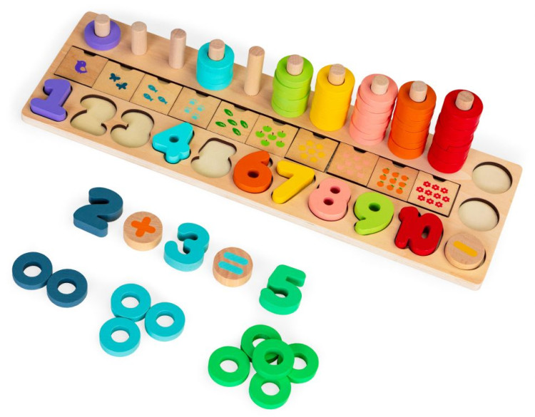Thanks to this set, your child will have the opportunity to learn numbers and the basics of counting. The set includes colorful blocks in the shape of numbers and numbers, as well as equation marks that will differentiate the game and allow the child to better understand the basics of mathematics. Besides learning to count, this game also helps develop motor skills, creativity and logical thinking.